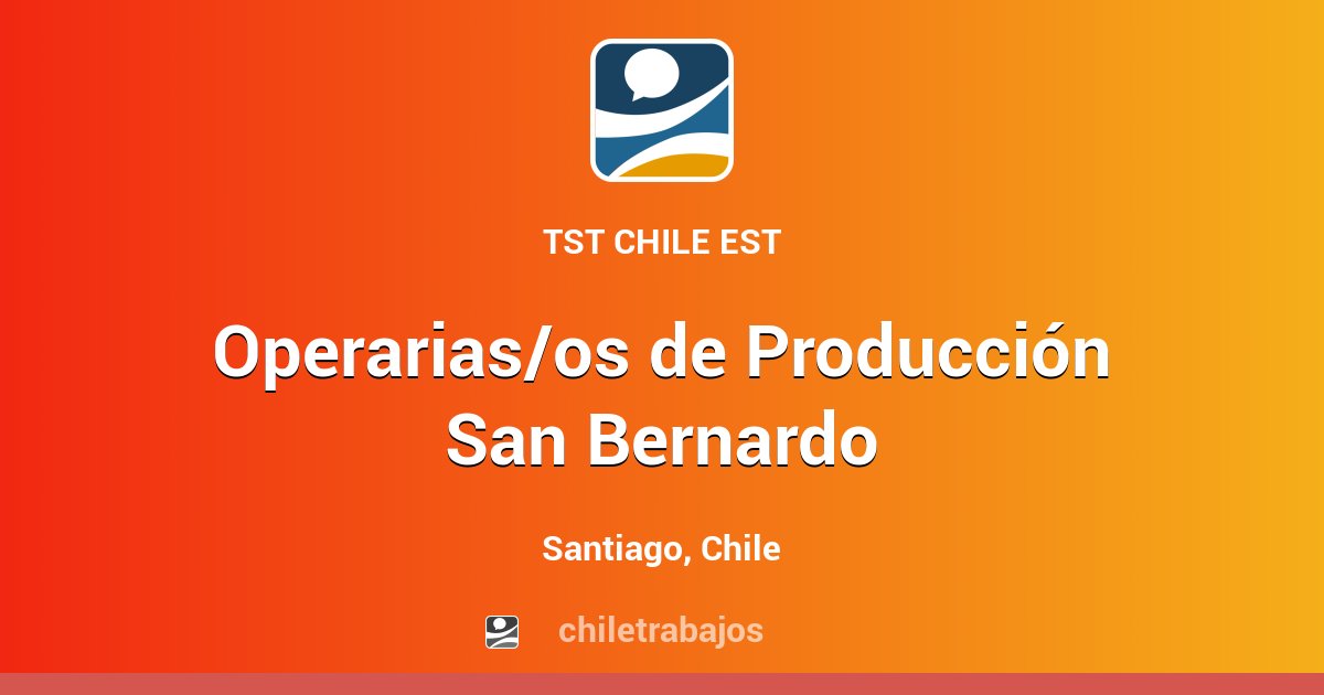San bernardo, región metropolitana de santiago, república de chile (5,284.70 mi) santiago, chile 8050000. Importante centro de distribución ubicado en la comuna de san bernardo se encuentra en búsqueda de operarios/as polifuncionales turno tarde. Este es un espacio para listar todas las ferias donde podemos hacer la comprita en santiago, por comunas. Las principales industrias de san bernardo son industrias manufactureras, comercio al por mayor y al por menor; Comuna santiago, provincia de maipo, región metropolitana de santiago.